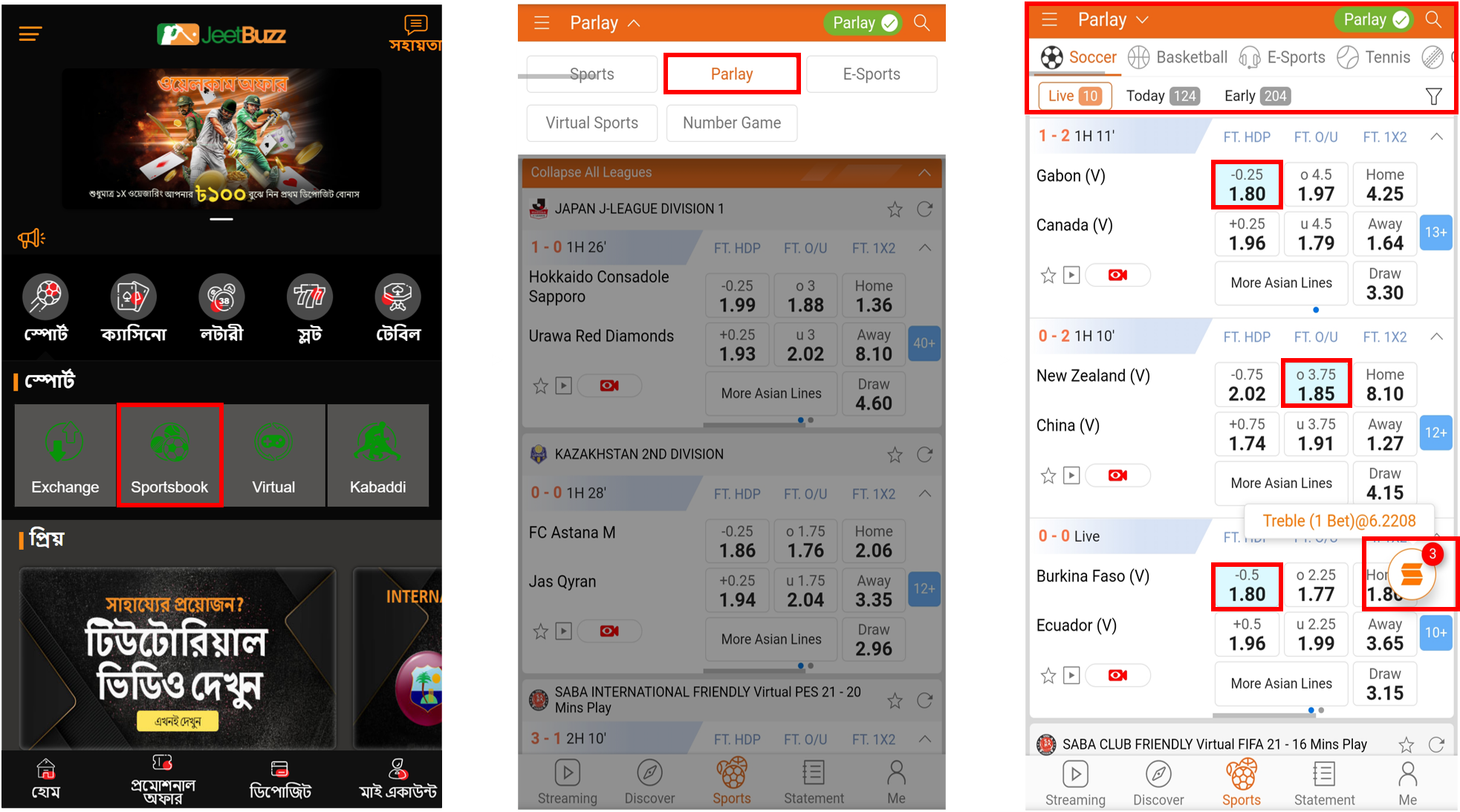 ধাপ ২: স্পোর্টসবুকে ক্লিক করুন এবং ‘Parlay’বেট নির্বাচন করুন।