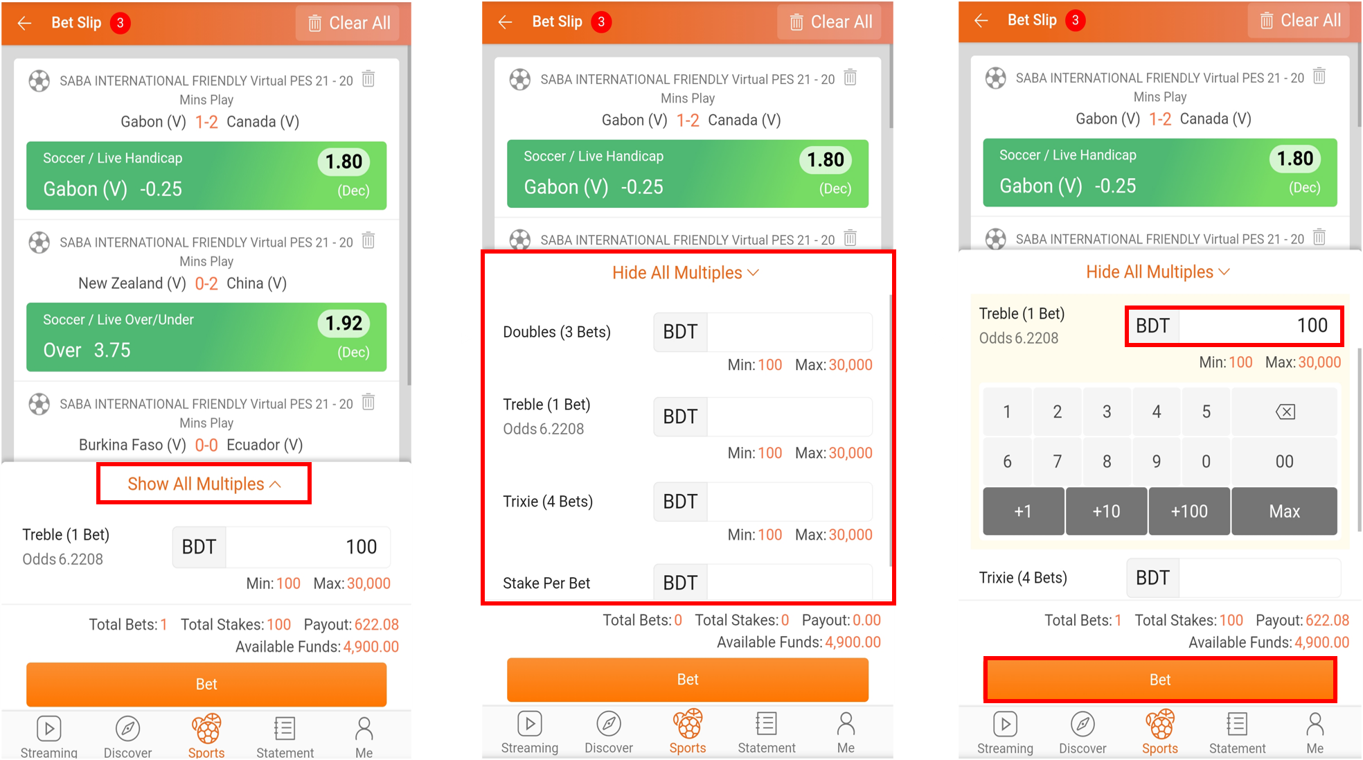 স্পোর্টসবুক – আমি কিভাবে একটি মিক্স পার্লে / মাল্টিপল বেট ধরতে করতে পারি?