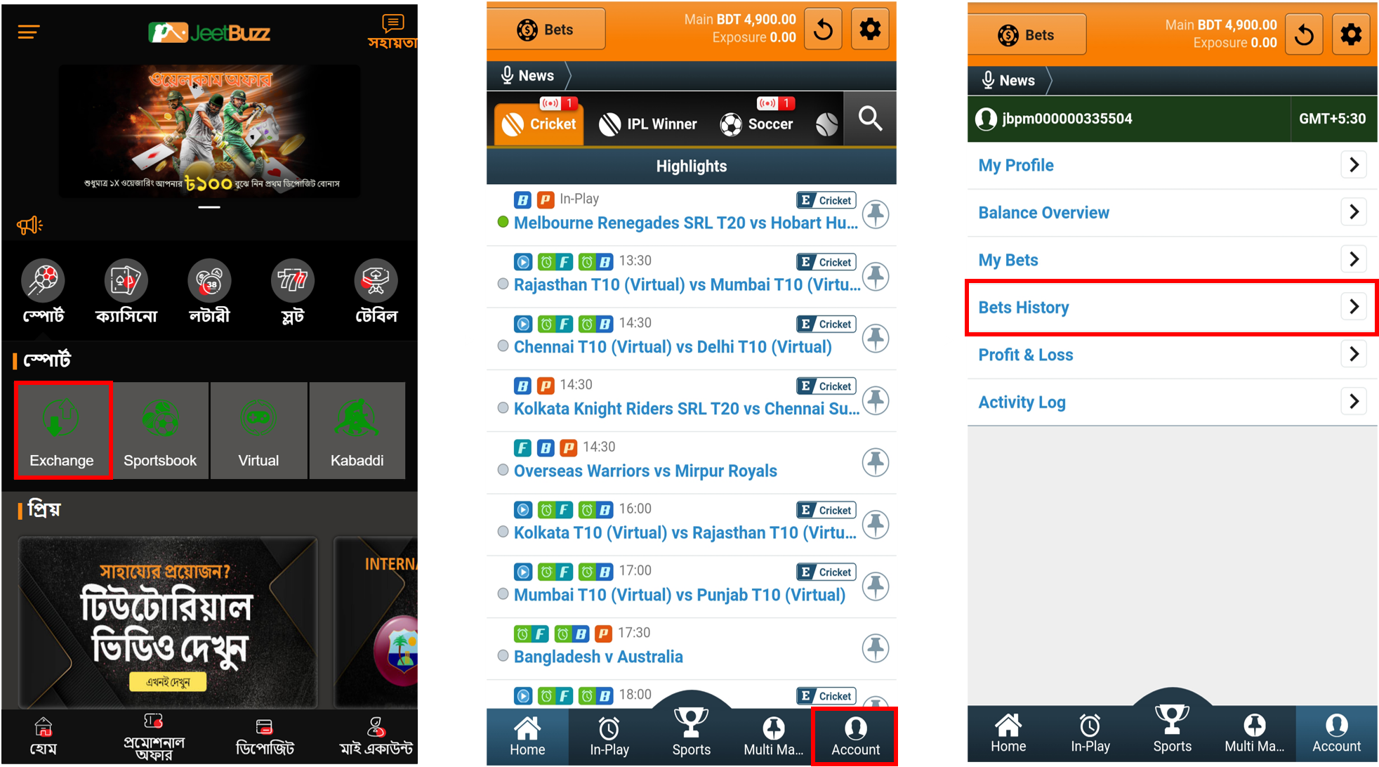 আপনার এক্সচেঞ্জ বেটিং হিস্টোরি চেক করার জন্য: